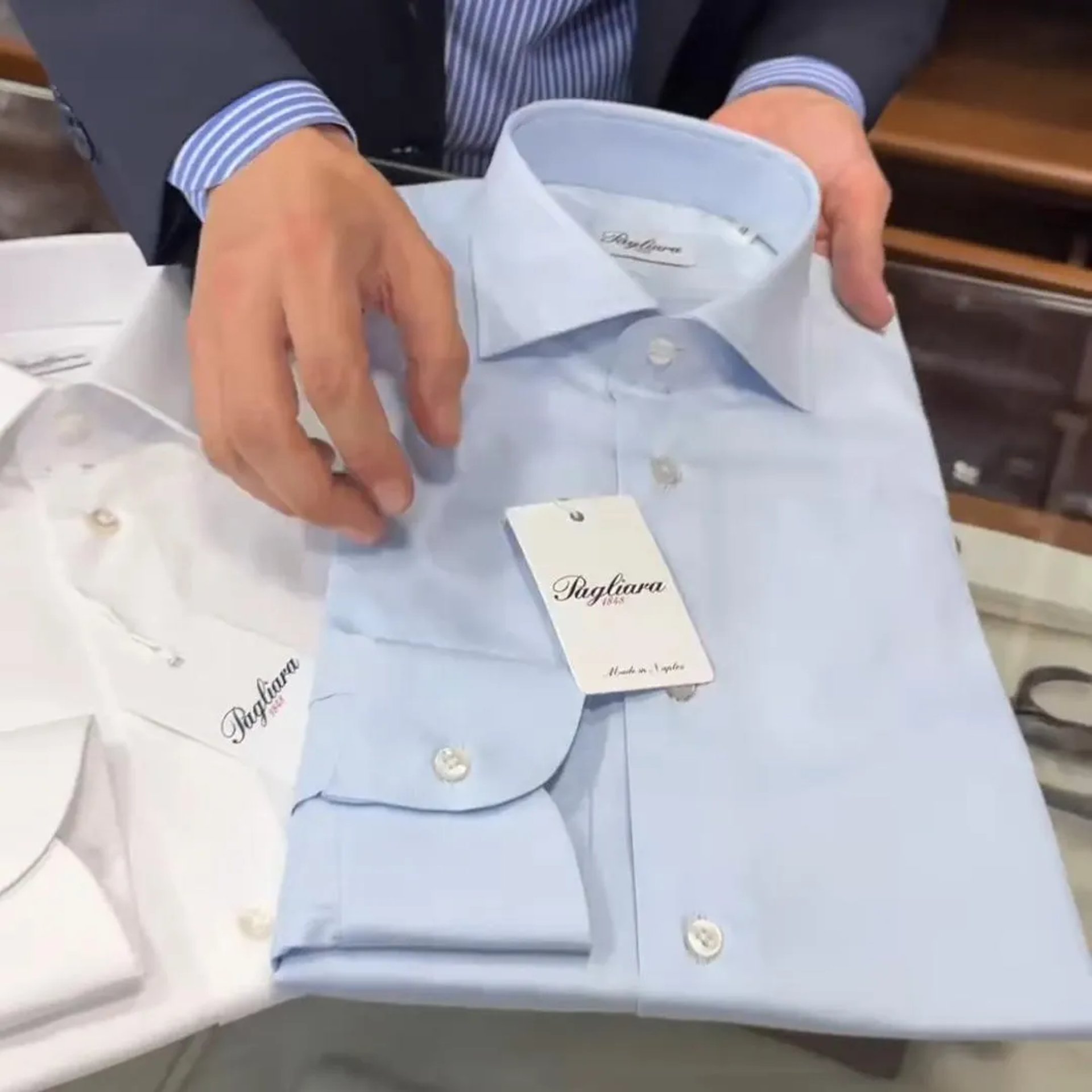 Scopri l’ordine corretto per scegliere le camicie: bianca formale, bianca collo francese, celeste e righe bastoncino. La guida Pagliara1848 per un guardaroba elegante.